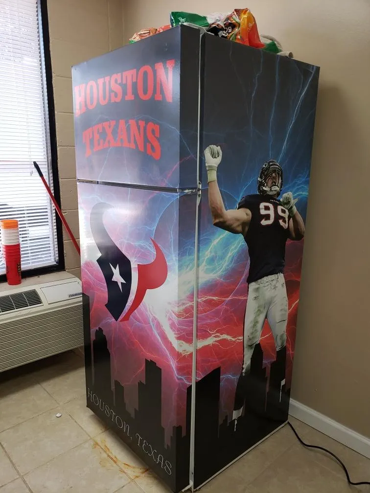 Tired of looking at a plain refrigerator? Add a graphic to make it stand out! We can custom design a wrap for your refrigerator, tool boxes, man cave.